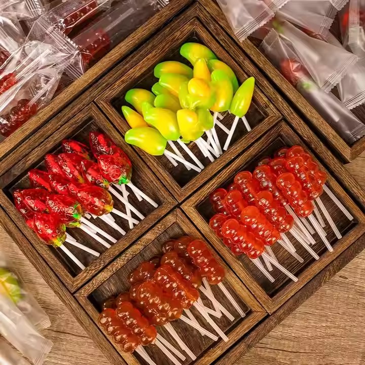 Candied Fruit Skewers Delicious Fruit-Shaped Soft Candy Lollipops Multiple Fruit Flavors Available